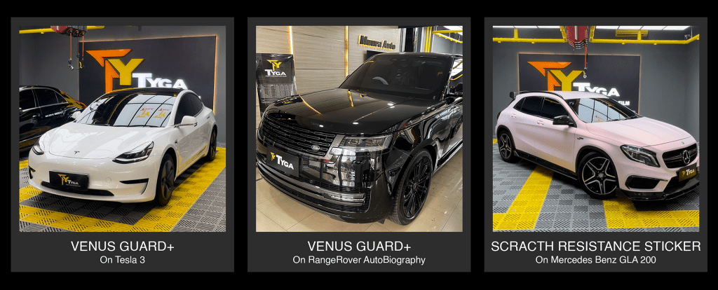Goresan mobil adalah hal yg paling lumrah ditemui dan dialami. Jadi sangat disayangkan jika sudah membeli mobil impian hasil kerja keras yg mahal, tapi kegores, harus coating setiap saat, atau cat mobil yg tampak menguning karena paparan sinar matahari? Pemasangan PPF di Tyga adalah satu-satunya solusi dari semua masalah body painting kamu. Dengan memasang PPF, mobil kamu akan jauh terlihat glossy, tak perlu coating setiap saat, bahkan kegores dengan tidak sengaja.